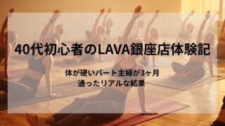 ホットヨガ LAVA 40代初心者のLAVA銀座店体験記。体が硬いパート主婦が3ヶ月通ったリアルな結果 40代初心者のパート主婦がLAVA銀座本店に3ヶ月通ったリアルな体験談!体の硬さや肩こりへの効果は?料金や予約、口コミを正直にレビューします。家事や仕事から離れて「自分の時間」を。心身がスッキリし、家族にも笑顔が増えた変化を公開中! 2026.01.16 ホットヨガ LAVA